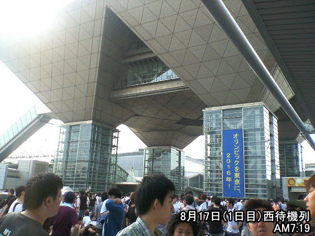・22時過ぎに連れ2人と合流。水分など買って国際展示場へ。